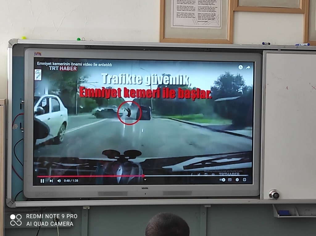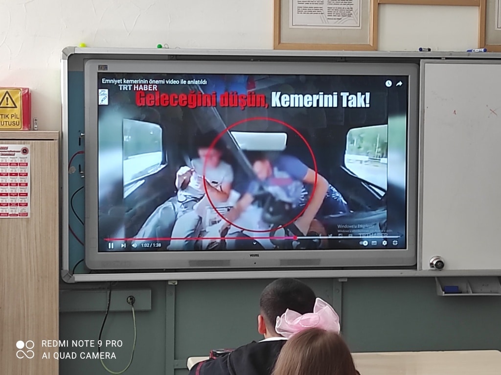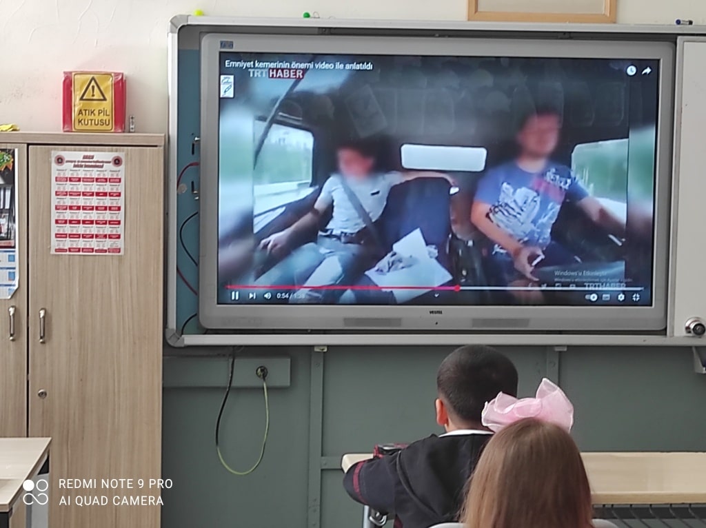 Trafik kurallarına uymayı yaygınlaştırmak ve emniyet kemeri kullanımının önemini vurgulamak amacıyla örnek videolar öğrencierimize izletildi ve öğrencilerimize emniyet kemeri takmanın önemini anlatıp kullanımı gösterildi.