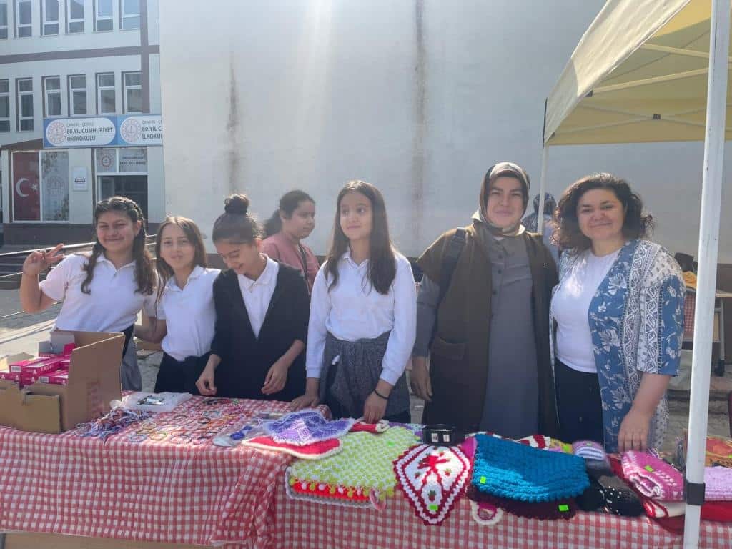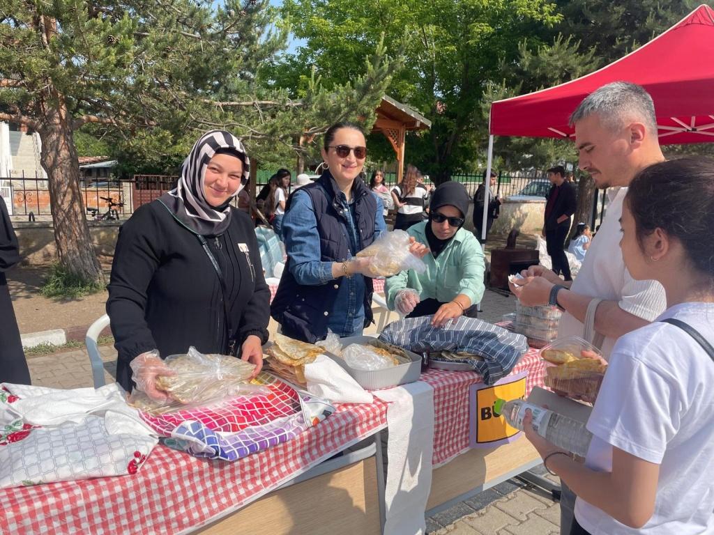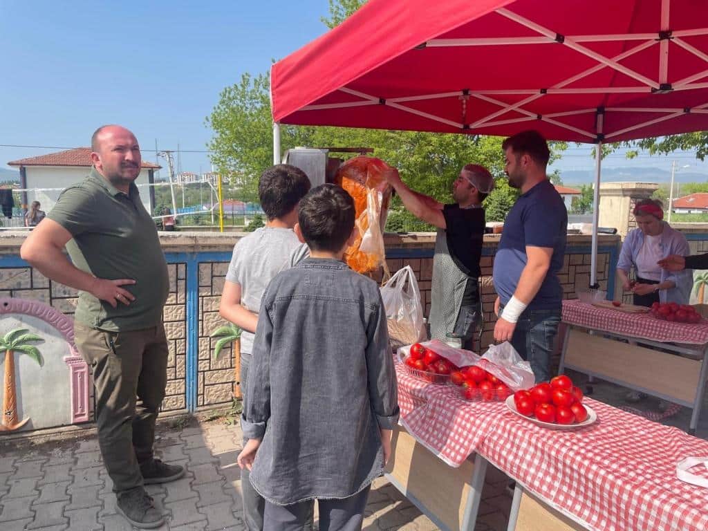 Okulumuz yararına okul bahçemizde dün gerçekleştirdiğimiz kermes büyük ilgi gördü. Kaymakam Sayın Emir Osman BULGURLU Belediye Başkanı Hasan SOPACI'nın ve diğer amirlerin katılımıyla gerçekleşen kermeste öğrenciler sene boyunca yaptıkları görsel sanat eserlerini sergilediler. Cag kebabı tavuk döner yöresel baklava su böreği bükme çiğköfte pasta ve elişlerinden oluşan kermeste büyük çoşku vardı. Katılım sağlayan emeği geçen tüm velilerimize teşekkür ederiz.